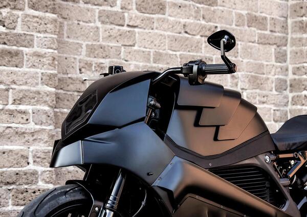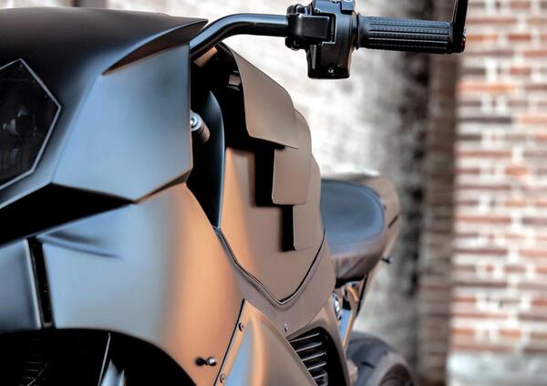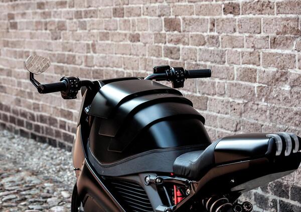 Sono state aggiunte lungo la carrozzeria numerose luci a LED, regolabili nel loro colore da un'apposita app, mentre la sella totalmente rifatta alloggia il cavo di ricarica e la targa è stata spostata a fianco della ruota posterirore. Il risultato è una moto total black che mantiene la guidabilità dell'originale ma che esprime un'aggressività spregiudicata enfatizzata dai nuovi dischi freno anteriori che ricordano delle lame circolari.