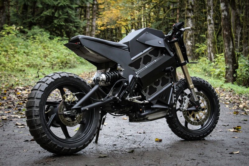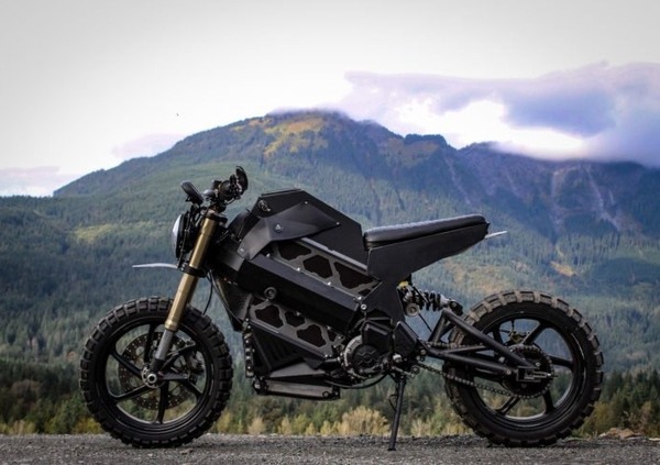Questa moto, nello specifico, è stata creata per un cliente che avrebbe voluto fare della propria Brammo Empulse R una moto più adatta agli sterrati. Il modello da cui è nata questa special ha un motore elettrico ACM Parker raffreddato a liquido che ha una potenza di 54 CV e, cosa alquanto insolita per una moto elettrica, è dotato di un cambio a pedale a sei marce. La forcella è un’unità Marzocchi a steli rovesciati da 43 mm, regolabile, mentre al posteriore si trova un monoammortizzatore, sempre completamente regolabile, a marchio Sachs.