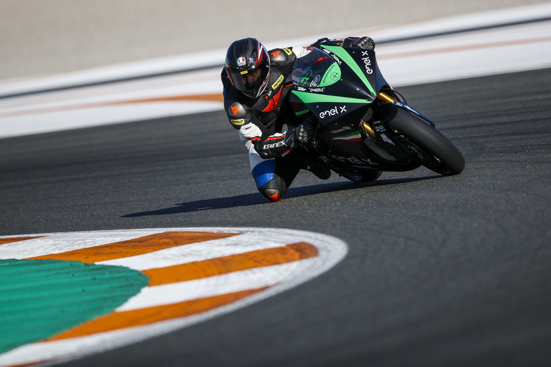 L’approccio alla Ego Corsa è allo stesso tempo facile e difficile. Facile, perché l’erogazione del motore elettrico permette di gestirne millimetricamente la potenza, e perché la Ego Corsa si presenta davvero equilibrata ed armonica nella ciclistica. Difficile, perché pur con tutta la fiducia in sé stessi e nelle termocoperte, nei primi giri sull’asfalto gelido del circuito di Valencia serve circospezione prima di fidarsi delle gomme. Me l’hanno ripetuto fino alla nausea: scaldale bene, almeno un paio di giri in progressione prima di iniziare a spingere. E occhio alle curve a destra. Sembrerà sciocco, ma oltretutto la mancanza degli automatismi di innesti e scalate priva il cervello di un altro riferimento, aumentando lo “stato di allerta” psicologico e la tensione.