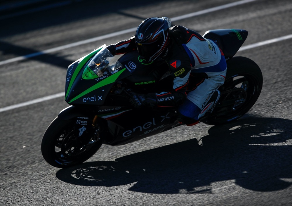 Quindi, anche se fa un freddo barbino, io non lo sento - sono troppo nervoso. Poi viene il momento di partire, i ragazzi di Energica mi tolgono le termocoperte ed esco dalla pitlane avvolto da un silenzio surreale, interrotto solo dal sibilo del motore elettrico. Abbasso la visiera e il nervosismo svanisce. Sono su una moto da corsa, tutto normale. E stavolta non mi devo nemmeno ricordare se il cambio è normale o rovesciato.