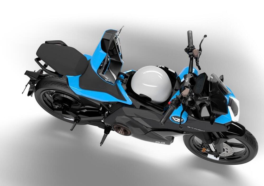 La Stash è stata pensata e progettata in Europa per rompe gli schemi della e-mobility a partire dalle forme ma ovviamente senza trascurare le prestazioni e piacere di guida. Il propulsore da 6000 Watt è posizionato nella parte bassa della motocicletta per permettere la centralizzazione delle masse e migliorare la guidabilità. Questa scelta progettuale lascia spazio nella parte superiore dove sotto a un “finto serbatoio” trova spazio un vano capace di ospitare anche un casco integrale.