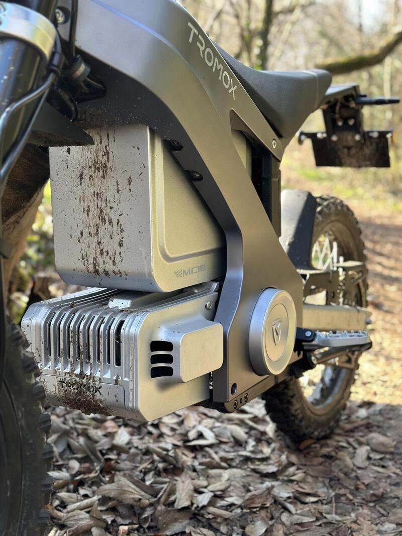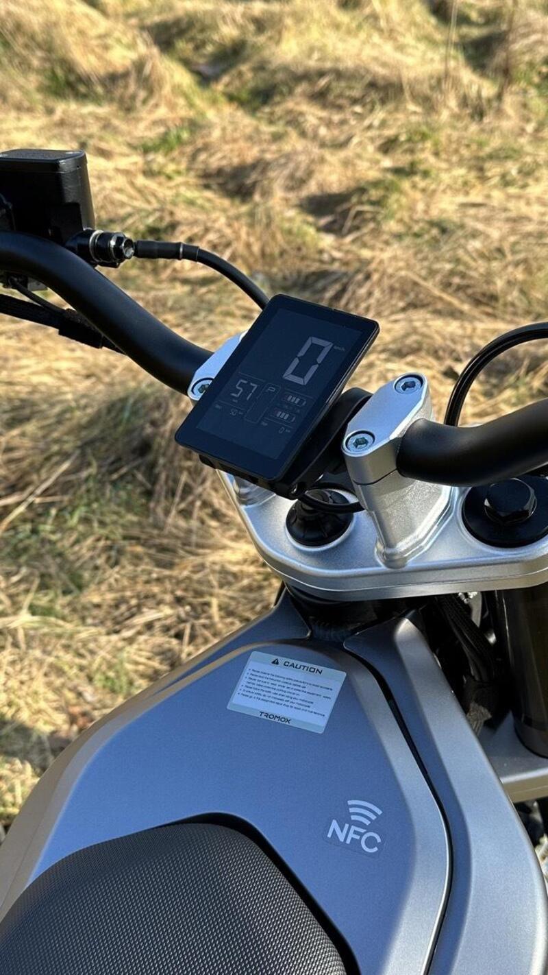 La MC10 che abbiamo guidato ha una potenza di picco di 11 kW che, complice un peso contenuto in 110 kg, garantisce uno spunto e una ripresa più che sufficienti a stamparci il sorriso specie quando il terreno non consente il massimo di grip. Il motore è convincente per prestazioni, garantisce una pendenza massima di 30° (anche se non abbiamo avuto la possibilità di verificarlo) e pone la MC10 in una categoria intermedia tra le più compatte elettriche L1 come ad esempio le Talaria Sting 4000 e prodotti più impegnativi con dimensioni da moto vera come ad esempio una Zero Motorcycles FX. La sella non è enorme ma consente un buon movimento, è ben imbottita e le dimensioni comunque contenute del mezzo costringono ad avere le gambe un po' raccolte. Tuttavia non risulta scomoda e anzi offre una maggiore confidenza con la possibilità di poggiare facilmente il piede a terra nonostante un'altezza di seduta comunque di 89 cm. Anche nella guida in piedi si soffrono un pochino le dimensioni contenute ma tutto sommato non si sta scomodi. Il merito è in gran parte di un manubrio bello largo che consente una presa adeguata. L'autonomia dichiarata di 130 km ci sembra plausibile a patto di andare in modalità ECO, ma con il riding mode Sport si possono fare comunque un centinaio di chilometri sfruttando tutta la coppia in spunto e l'ottima scorrevolezza in rilascio. Abbastanza convincente il comportamento ciclistico: pur non essendo una moto specialistica l'assorbimento è abbastanza buono specie all'anteriore dove troviamo una generosa forcella USD. Dietro il monoammortizzatore appare più limitato anche se va detto che i progettisti di Tromox hanno fatto un lavoro interessante per il leveraggio. Le ruote sono entrambe da 19 pollici e la frenata è CBS con comandi al manubrio. La potenza frenante è sufficiente e la modulabilità discreta, ma il fatto di non poter frenare soltanto con una ruota per volta è piuttosto limitante in fuori strada. Tra i peccati di gioventù segnaliamo un funzionamento non sempre regolare alla riapertura del potenziometro: dopo un brusco rilascio con frenata intensa e riprendiamo l'acceleratore il motore ha un ritardo che ha una durata variabile e questo non va bene. Imputiamo questo problemuccio ad un'impostazione ancora molto conservativa e tarata per i panic stop su asfalto e non per un uso più enduristico. Siamo certi che Tromox troverà la soluzione anche perché per il resto la MC10 è una moto proprio piacevole da usare tra boschi e sentieri. Disponibile nera o grigia, con prezzi non ancora ufficializzati ma che dovrebbero essere di circa 5.300 euro per la L1 e 6.800 euro per la L3, la novità di Tromox dovrebbe essere in vendita ad inizio primavera.