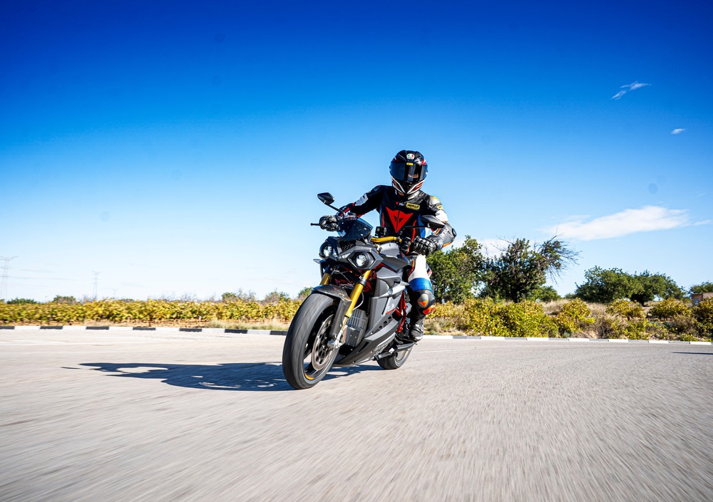 Ma è nella maneggevolezza che si scoprono i maggiori miglioramenti nella “nuova” Eva. Molto più equilibrata e neutra, la supernaked Energica ha perso quella tendenza al sottosterzo, quel ritardo nell’inserimento che obbligava a compensare di fisico e anticipo delle traiettorie nella guida sportiva sul modello precedente. Certo, bisognerà aspettare condizioni più probanti per poterla valutare con maggior attendibilità, ma già così, su rotatori e curve di ogni raggio l’impressione è quella di una moto molto più equilibrata e “normale”.
