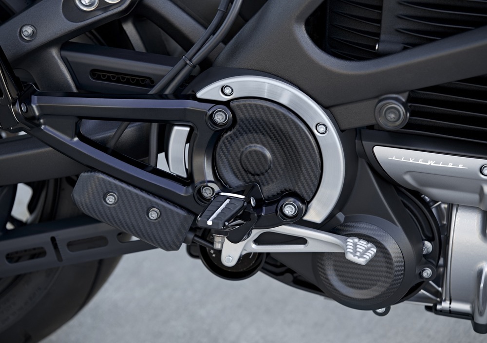 A causa dell’assenza di trasmissione tradizionale e frizione, guidare LiveWire è una proposta "twist-and-go" accessibile ed elettrizzante. Una coppia conica a bagno d’olio con un rapporto di 9,71:1 genera il sound inconfondibile e distintivo della LiveWire. Una cinghia trasferisce la potenza dal pignone alla ruota posteriore, con un rapporto 3:1 tra la puleggia e la ruota. L’intero meccanismo è progettato per produrre un sound distintivo mentre la LiveWire accelera e guadagna velocità.