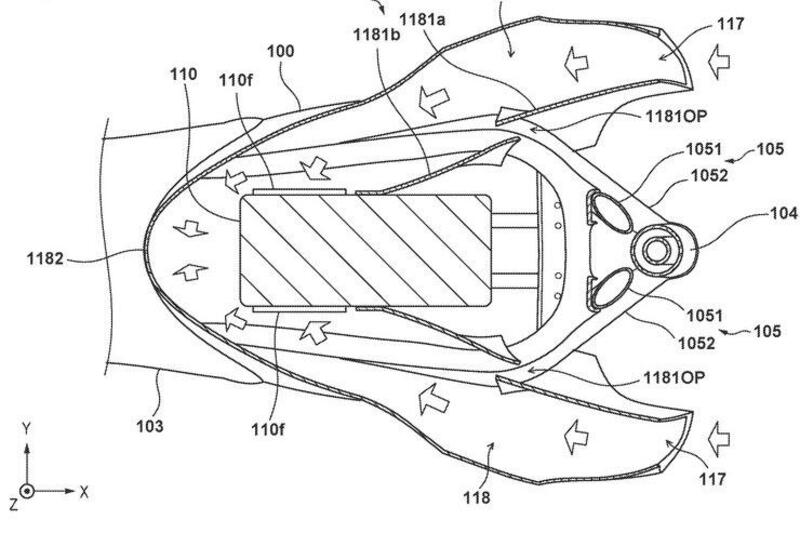 Negli ultimi giorni Honda ha depositato altri brevetti che mostrano tre diversi progetti tutti relativi a una moto elettrica su base CB125R. Cambiano leggermente la disposizione di motore, batteria e trasmissione, ma non l'idea. Quello che più stupisce è quanto sia poco lo spazio occupato da trasmissione e motore. Dai nuovi disegni si vede anche come le prese d'aria del modello termico sono utili a raffreddare la batteria nella futura moto elettrica e il foro per fare benzina diventa l'apertura dove inerire il connettore di ricarica.