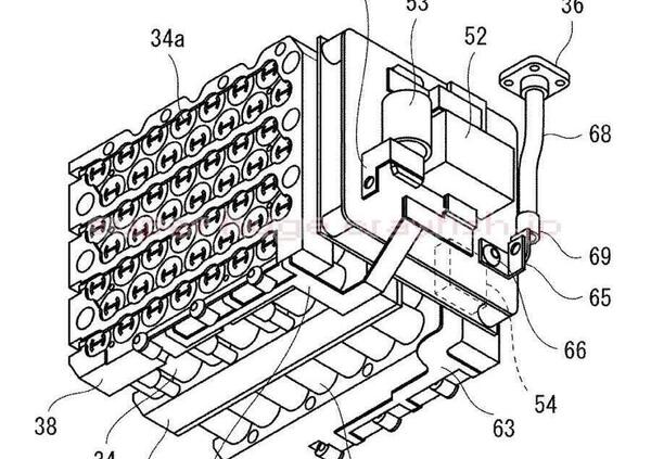 Ora, grazie ad un nuovo brevetto, cominciano ad emergere anche caratteristiche tecniche della moto ibrida Kawasaki. Nello specifico si tratta in particolare della batteria e del sistema che gli permetterà di immagazzinare l'energia prodotta dal motore termico. In dettaglio si distingue lo schema secondo cui verranno disposte le celle agli ioni di Litio e il sistema di gestione della batteria, i relè, i fusibili, ecc. Il progetto ha inoltre un elevato grado di dettaglio e arriva a mostrare persino le alette di raffreddamento integrate nell'involucro.
