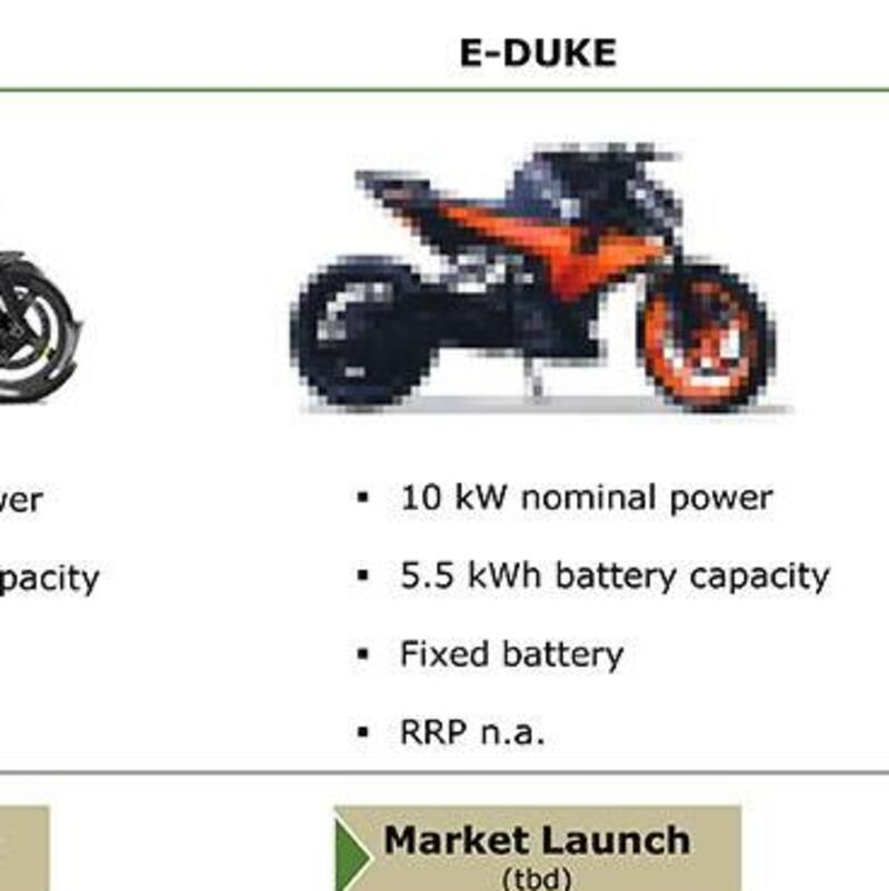 Non sono state indicate, invece, le tempistiche di arrivo delle moto Husqvarna E-Pilen e KTM E-Duke, entrambe con 10 kW di potenza nominale e batteria fissa da 5,5 kWh di capacità.