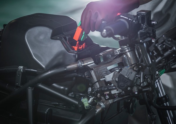 Il telaio progettato per consentire una facile rimozione della batteria e delle parti elettroniche integrate permetterà di tenere distinti produzione e stoccaggio della moto e della batteria che saranno idealmente unite in ultimissima fase e pare che l'idea sia quella di affidare l'assemblaggio finale addirittura ai rivenditori.