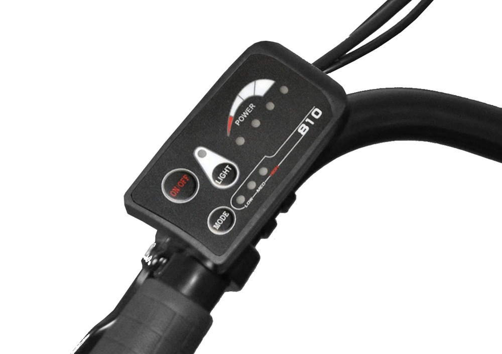 La X5 monta un cambio Shimano a sei rapporti. Il deragliatore è governato da un selezionatore montato sulla manopola destra. I freni sono V brave sia all’anteriore che al posteriore. Il pannello di controllo è a LED e permette di azionare e monitorare: la funzione PAS, lo stato di carica della batteria e la velocità massima di assistenza del propulsore.
