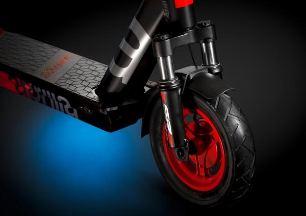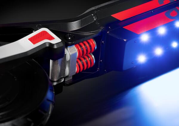 Non solo prestazioni ma anche comodità e stabilità grazie alle doppie sospensioni anteriori, che insieme agli pneumatici con camera d’aria da 10’’, attutiscono i colpi e le vibrazioni trasmesse dal manto stradale irregolare. Una maggiore sicurezza su strada è garantita dai fanali a LED, anteriore e posteriore, che assicurano visibilità in situazioni di guida notturna o di ridotta luminosità, e dal doppio freno a tamburo anteriore ed elettronico posteriore.
