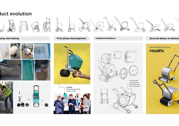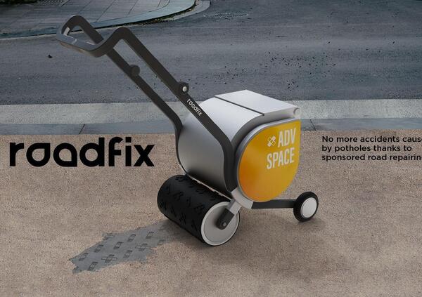 Si tratta di un piccolo mezzo dotato di motore elettrico. All'interno c'è un contenitore con acqua e cemento che vengono miscelate e con un pulsante si versa il composto sulla buca. Spingendo Roadfix in avanti, la ruota posteriore compatta la malta e imprime la trama sulla superficie. Il disegno posto sul rullo è intercambiabile e quindi le aziende possono apporre il proprio logo come texture sulla toppa. Oggi è il Comune che si fa carico dei costi di riparazione della strada ma attraverso questa tecnologia sarebbe possibile trovare aziende disposte a fare pubblicità migliorando e aiutando le nostre città. Un progetto interessante anche se nella realtà dei fatti si dovrebbe scontrare con il Codice della Strada.