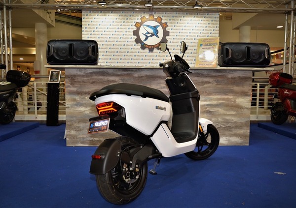 Abbinato a batterie removibili Panasonic agli ioni di litio da 60 V e 20 Ah, lo scooter E-Mako è declinato in due versioni iniziali (sono già all'orizzonte varianti di maggiore potenza e dimensioni) identiche nelle dimensioni e nelle forme: la City, pensata soprattutto per l’ambito urbano, con autonomia di 50 chilometri, e la Plus, che grazie alla doppia batteria assicura una percorrenza totale ben maggiore, e che recupera, grazie al bauletto di serie, lo spazio sottosella perduto per via del secondo elemento Panasonic.