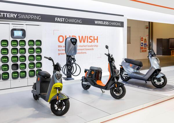Nello stand Yadea si può anche vedere da vicino la tecnologia di "Gogoro Network". Si tratta del più diffuso sistema di battery swapping che permette di fermarsi in una stazione togliere la propria batteria dallo scooter e sostituirla con una carica.