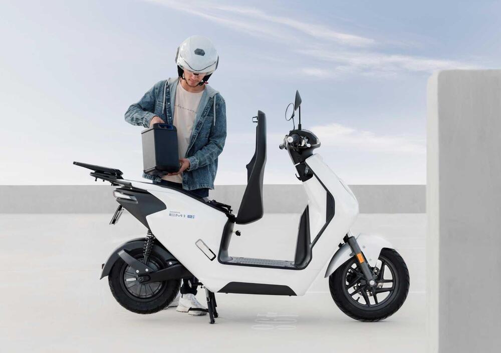 L'EM1 e: è dotato del sistema a batteria asportabile Honda Mobile Power Pack e: che consente di ricaricare la batteria comodamente a casa, con l’apposito caricabatteria. Una grande comodità, soprattutto per chi è abituato a parcheggiare lo scooter in strada, anche di notte.