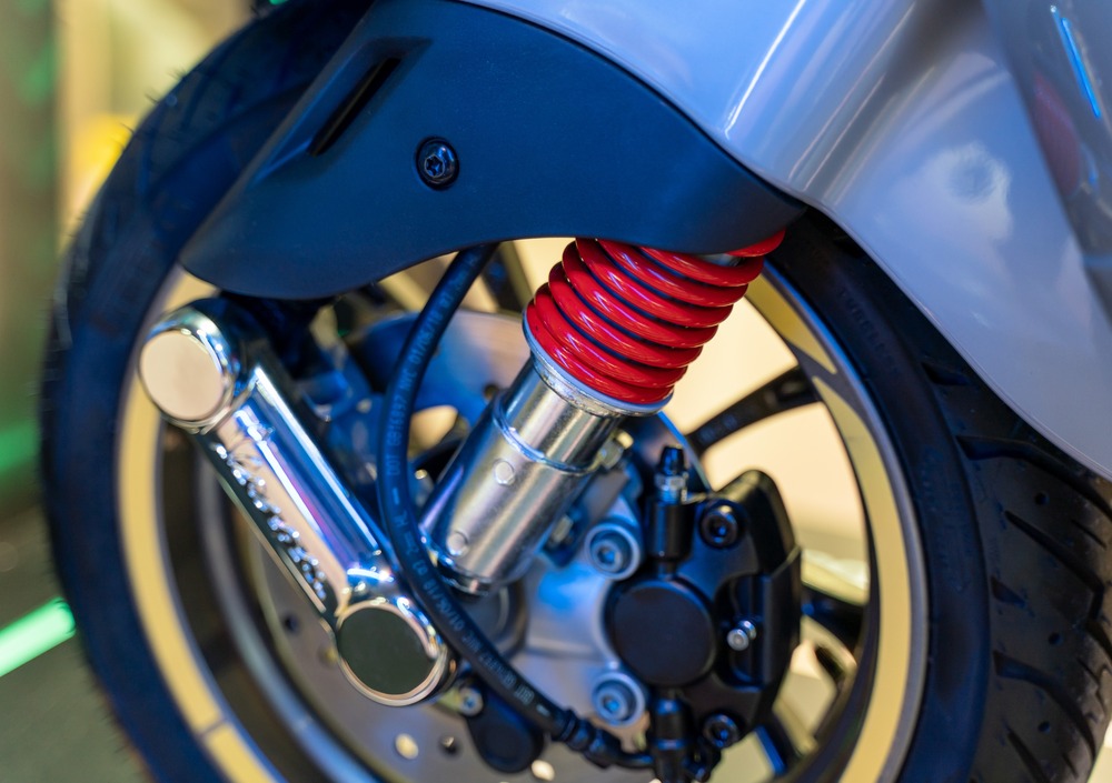 Esteticamente cambia qualche piccolo dettaglio: la molla dell'ammortizzatore anteriore è verniciata di rosso, come rossi sono anche i fregi presenti sulla cover della Power Unit e sulla targhetta “Elettrica”.