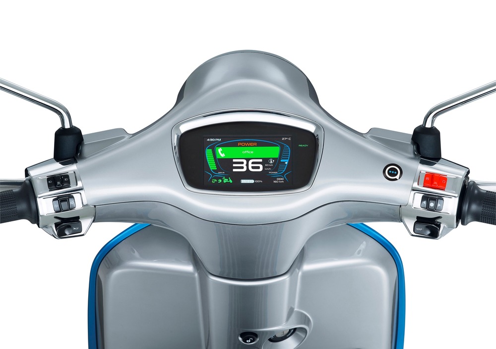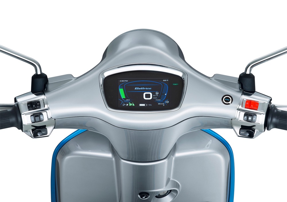 Connettendo poi la Vespa all'app (disponibile per IOS e Android) vedremo apparire sul TFT anche le notifiche dei messaggi e delle chiamate in entrata. Se il nostro telefono è poi collegato anche ad un interfono nel casco, il sistema ci permetterà di rispondere alle telefonate attraverso i tasti al manubrio e sempre dal manubrio potremo attivare i comandi vocali dello smartphone per effettuare chiamate o riprodurre musica.
