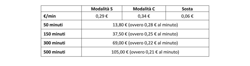 Costo min: 0,29 € (velocità limitata a 50 km/h)