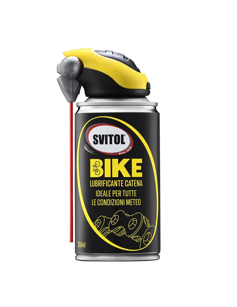 SVITOL BIKE LUBRIFICANTE CATENA: disponibile nel formato da 250ml, è stato concepito per offre prestazioni di lunga durata in tutte le condizioni ambientali. Ha una formulazione a base di lubrificanti sintetici ad elevata purezza con additivazione di microscaglie ceramiche, in grado di penetrare e aderire perfettamente nelle microrugosità della superficie metallica. Il prodotto lascia sulla catena della bici un film lubrificante studiato per prevenire e ridurre l'usura. E’ stato realizzato anche per l’utilizzo su cambio, deragliatori, pacco pignoni, cavi e leve.