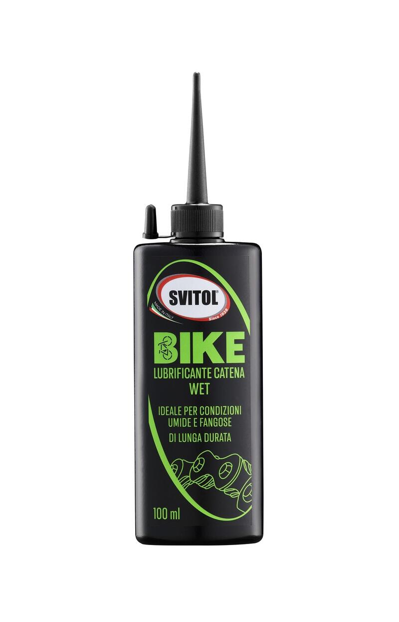 SVITOL BIKE LUBRIFICANTE CATENA WET: disponibile nel formato da 100ml, è perfetto in condizioni estreme, umide e fangose. La sua moderna formulazione con additivazione ceramica è stata pensata per avere la massima resistenza al dilavamento, così da garantire una lubrificazione più duratura e ottime proprietà anti usura anche nelle condizioni più “bagnate”. Sfrutta microscopiche scaglie di ceramica che formano una barriera compatta e uniforme contro acqua, sporcizia e agenti ossidanti