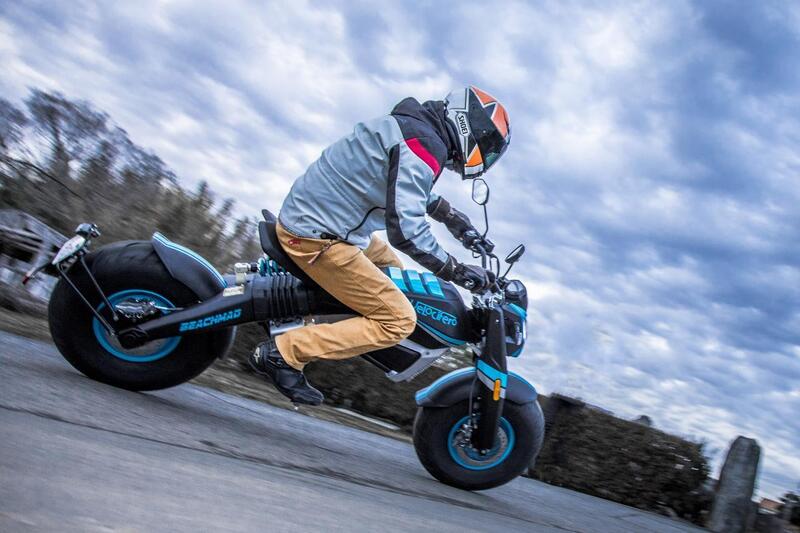Caratterizzato da un essenziale telaio a trave superiore in acciaio che si collega al forcellone oscillante, il nuovo Beach MAD ha il pacco batterie fra sella e forcella, il serbatoio è in realtà un vano portaoggetti e il motore elettrico è ospitato nel mozzo della ruota posteriore.