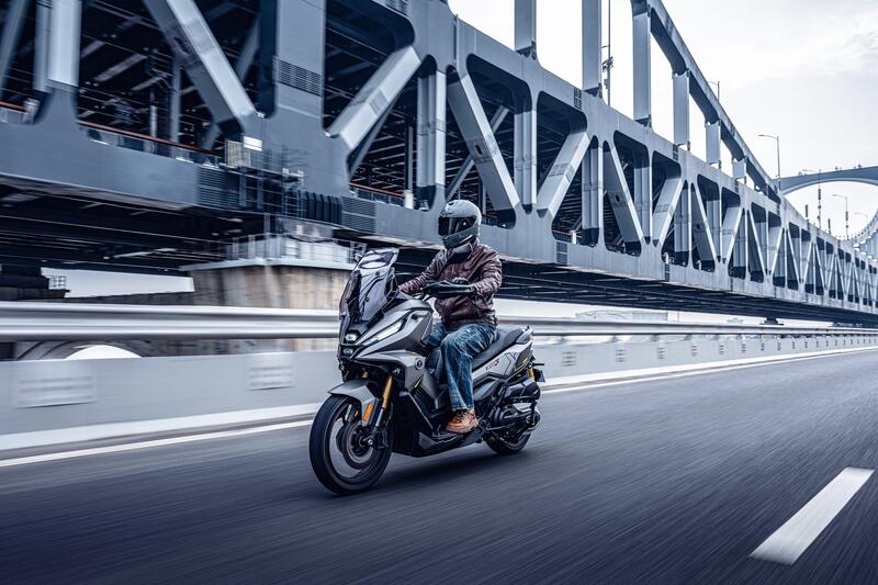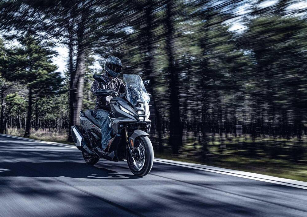 Il suo motore bicilindrico da 398 cc con distribuzione a quattro valvole per cilindro è compattissimo ed eroga una potenza di 31 kW (42 cavalli) a 8.000 rpm e una coppia di 40 Nm a 5750 rpm, prestazioni gestite come sempre attraverso una trasmissione CVT. La luce a terra di 180 mm insieme agli pneumatici all-terrain e alle sospensioni KYB regolabili le rendono possibili facili escursioni in fuoristrada, mentre sulla dotazione spicca il parabrezza regolabile elettronicamente, manopole e sella riscaldabili, le dashcam e un ampio serbatoio da 18 litri che garantisce un'autonomia di oltre 400 km.