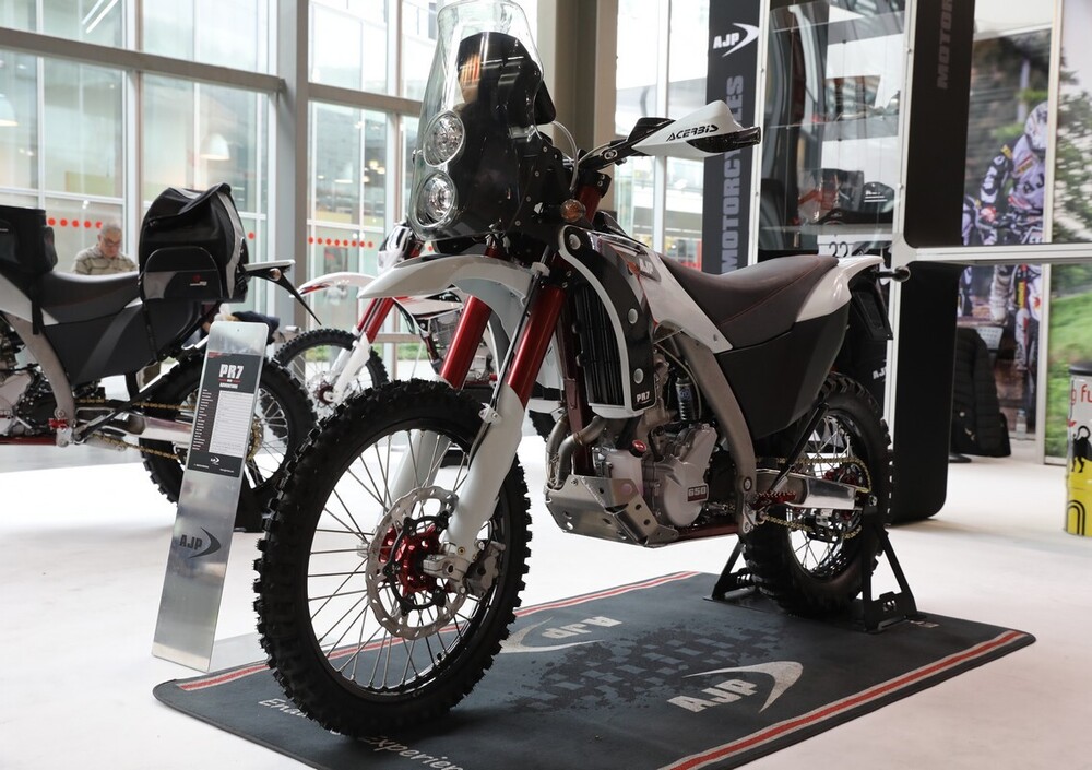 Al Salone di Milano il marchio portoghese, AJP Motos, presenta una nuova motocicletta da fuoristrada, ma nel suo DNA c’è anche il gene da viaggiatrice: ecco la PR7 650 Adventure. Come potete vedere dalle foto, la tassellata portoghese ha un look da vera moto da rally: codino snello e muso con il plexiglass alto per una migliore protezione dell’aria. Per aumentare la capacità di carburante, che tocca quota 16 litri, e per migliorare la ripartizione dei pesi, il serbatoio è stato posizionato nella parte posteriore della moto, sotto le tabelle portanumero. Il tappo si trova sempre davanti alla sella. Per quanto riguarda il motore, la PR7 650 Adventure monta un monocilindrico 4 tempi da 600 cc raffreddato a liquido, aggiornato e in passato già apprezzato sulle Husqvarna dual sport.