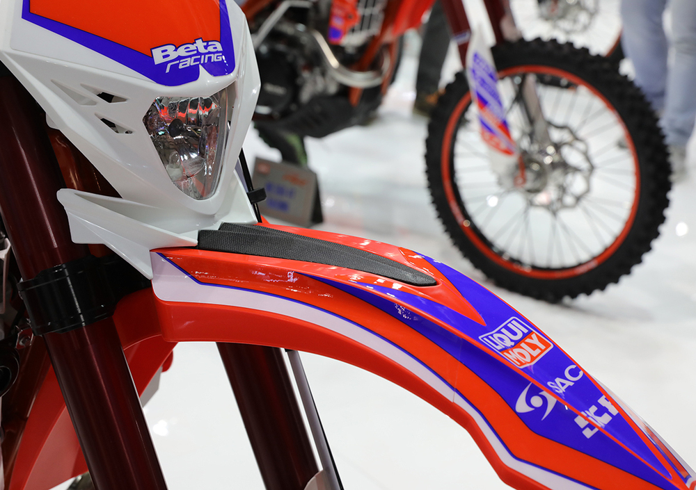 Per quanto riguarda il lato estetico, le nuove Beta RR Racing rimangono fedeli al rosso, che colora le plastiche, il telaio e da quest’anno anche i foderi della forcella. Inoltre, c’è la possibilità di personalizzarle con grafiche racing con numerosi dettagli in blu.
