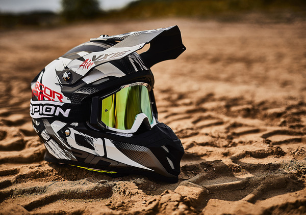 Sviluppato con la collaborazione dei migliori piloti off-road cross e enduro, il nuovo Scorpion VX-16 AIR eredita la formula vincente dal suo predecessore migliorandola ulteriormente: un peso di soli 1180 g nella taglia M (con un guadagno di oltre 200 g), un campo visivo ancora più ampio, una mentoniera ridisegnata per rendere ancora più facile la respirazione durante lo sforzo, un visierino posizionato più in alto e con intagli aerodinamici super efficienti per un look ancora più aggressivo, peak extension di serie, nuovi guanciali interni 3D Contour e sistema di gonfiaggio Scorpion Airfit.