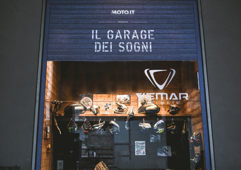 E poi in Rinascente, quartier generale di Moto.it Festival. Qui abbiamo curato l’art direction (insieme allo scenografo Tony Pignatelli) delle 8 vetrine (piano terra del negozio) a tema Il Garage dei Sogni, coinvolgendo importanti marchi del settore come BMW, Energica, Piaggio, Quadro Vehicles, Vemar Helmets per l’allestimento. E Bosch, Cellular Line, Herd of Wolves e HJC per le vetrine dello Spazio Annex.