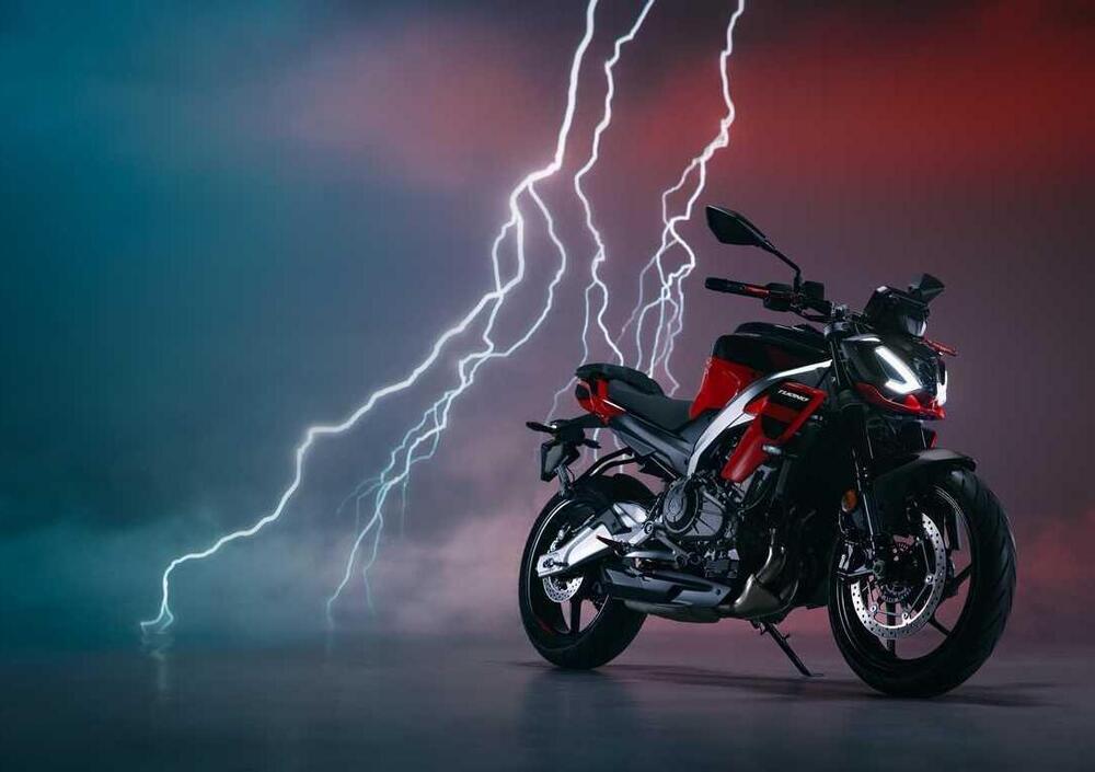 Aprilia Tuono 457 è proposta in due varianti grafiche. La livrea Piranha Red propone i colori tipici della storia di Aprilia, il nero e il rosso.