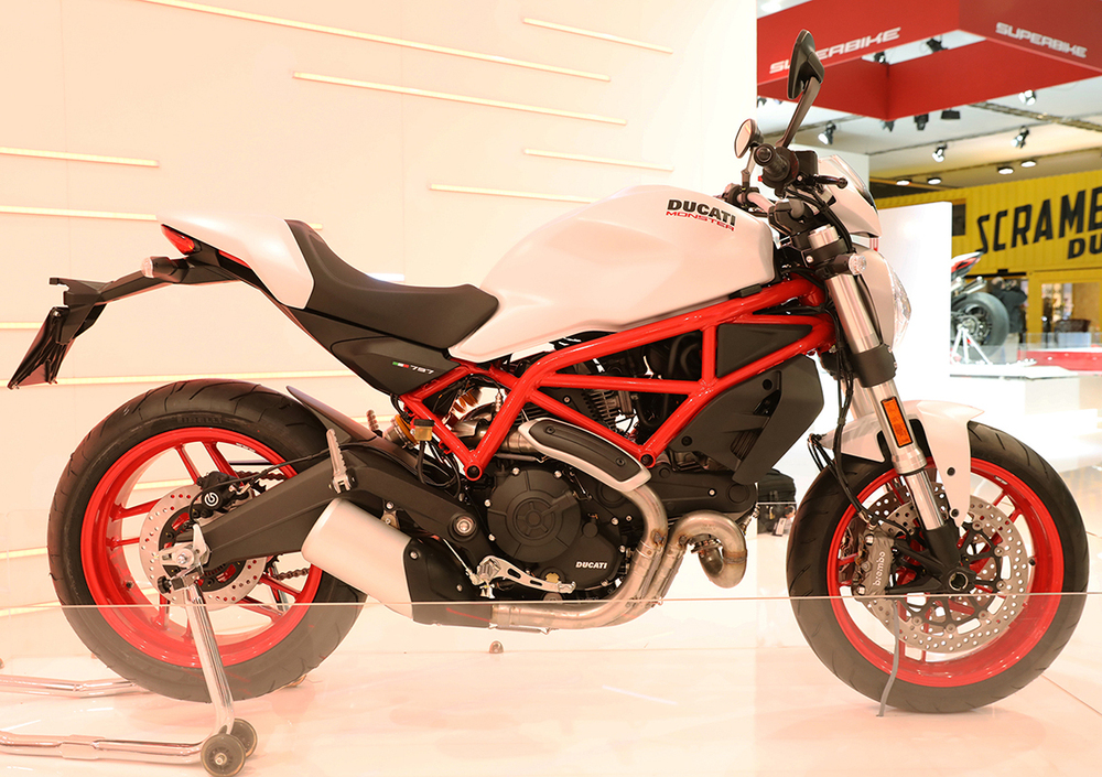 La strumentazione conta sull’ormai noto pannello LCD utilizzato su diverse Ducati; il faro anteriore ha la luce di posizione a LED come la luce posteriore. Nel sottosella è presente una presa USB. Ducati Monster 797 è disponibile nelle tre colorazioni Rosso Ducati con telaio rosso e cerchi ruota neri (8.950 euro), Star White Silk con telaio rosso e cerchi ruota rossi, Dark Stealth con telaio nero e cerchi ruota neri (9.050 euro), e la versione Plus a 400 euro in più.