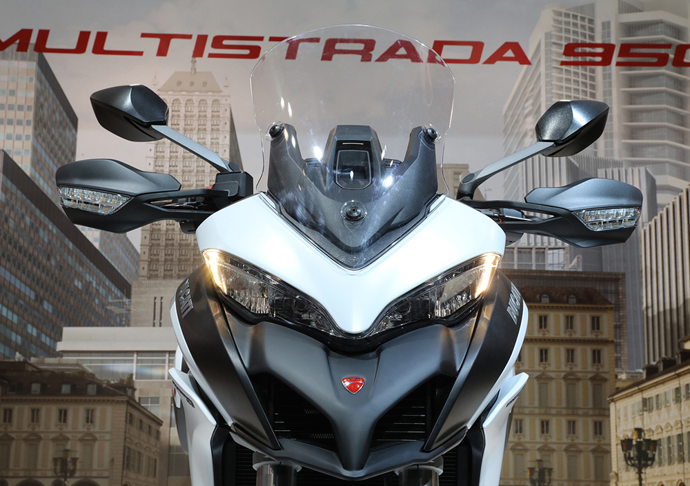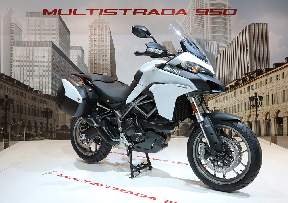 La Multistrada 950 è disponibile in due colorazioni: Rosso Ducati e Star White Silk, entrambe con telaio e cerchi grigio opaco. Quattro i pacchetti accessori proposti, che si possono naturalmente adottare anche insieme: il Touring Pack che propone valigie laterali e cavalletto centrale, lo Sport Pack che aggiunge lo scarico omologato Ducati Performance by Termignoni, tappi telaio e tappo serbatoio pompa freno anteriore in alluminio ricavati dal pieno. L’Urban Pack comprende top case, borsa da serbatoio con tank lock e USB hub per ricaricare cellulare o tablet, ed infine l’Enduro Pack comprende barre di protezione motore, protezione radiatore e paracoppa in alluminio, base cavalletto laterale maggiorata e pedane pilota da fuoristrada oltre ai faretti supplementari a LED. Prezzo da 13.690 euro.