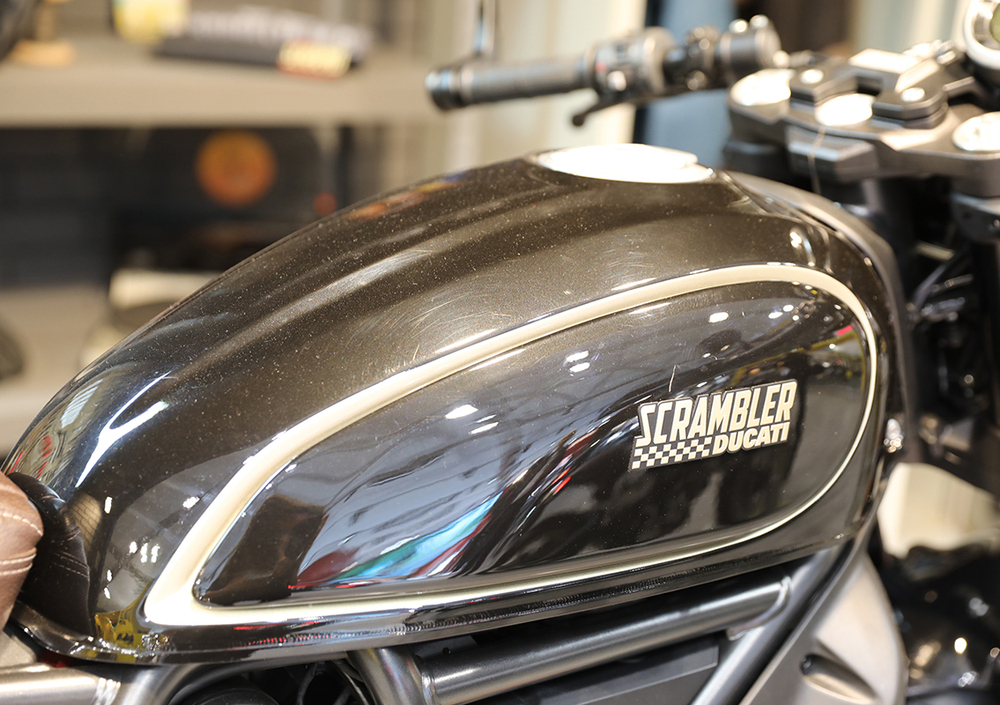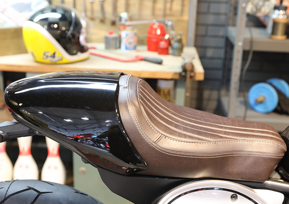 Anche il serbatoio a goccia è invariato, mentre la sella è specifica per questo modello di Scrambler, con tanto di coprisella che la fa diventare monoposto. Completano il quadro i due semimanubrio in alluminio con specchietti bar-end, scarico Termignoni con doppio terminale e cover in alluminio anodizzato nero, portanumero laterali e il parafango corto. La Café Racer è disponibile nella sola colorazione “BlackCoffee” con telaio nero e ruote oro. Prezzo da 10.950 euro.