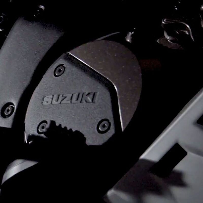 La breve sequenza, che mostra chiaramente la vista di tre quarti anteriore della moto, conferma una nuova estetica di chiaro riferimento al design – e alla colorazione – della prima DR Big 750, con tanto di parafango a becco alto e faro rettangolare che ricorda la Katana.