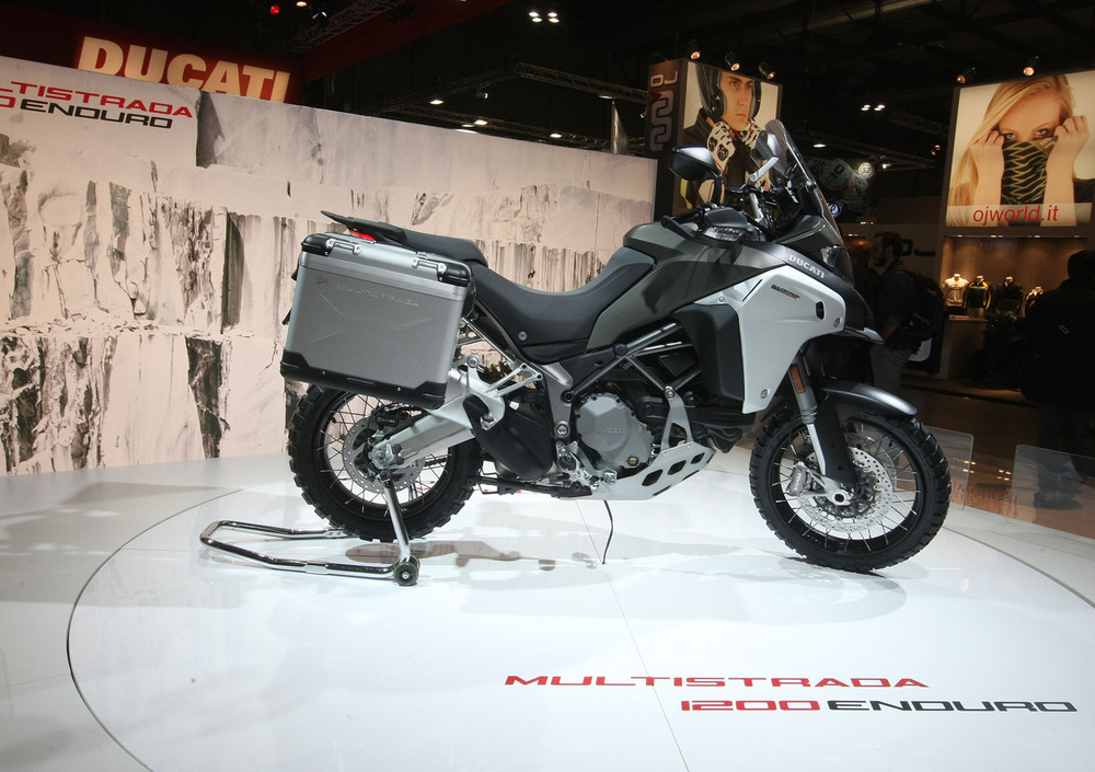 Arriva al Salone di Milano EICMA 2015 la nuova Ducati Multistrada 1200 Enduro, allestimento “Adventure” dell’ultima crossover/travel di Borgo Panigale che concretizza quelle promesse fuoristradistiche fatte dall’evoluzione architetturale di cui il modello standard è stato protagonista l’anno scorso: quell’innalzamento del propulsore per aumentare la luce a terra che ha definito il nuovo look più massiccio e muscoloso in… zona spalle.