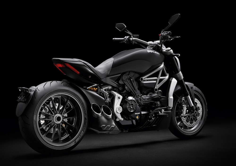 Disponibile solo in nero, XDiavel è disponibile nella versione standard (nera opaca) e nella S, con livrea lucida. La versione S aggiunge il già citato gruppo ottico anteriore con DRL, forcella con riporto DLC sugli steli, pinze anteriori Brembo M50, sella speciale e dettagli con lavorazioni a vista – cerchi da 14 invece che 12 razze e cartelle distribuzione in alluminio – e verniciatura del motore in nero lucido.