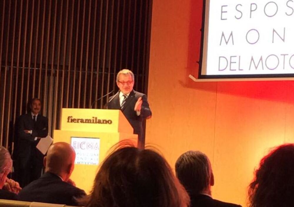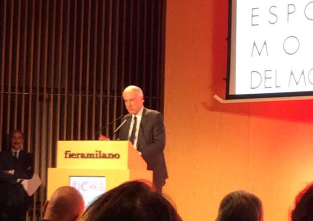 Eicma è una fiera conosciuta a livello internazionale e il suo successo è quello di mescolare creatività, innovazione, passione, design, cultura e tradizione che insieme danno vita ad un oggetto di alto ingegno: la motocicletta. Ogni anno il numero degli espositori e dei visitatori aumenta e questo fatto entusiasma molto gli operatori del settore poichè significa che la passione per le moto coinvolge più persone ma soprattutto le nuove generazioni. Il Ministro Guidi concentra il proprio discorso su punti prettamente economici e in base ai dati esposti si comprende come l'Italia sia predominante all'interno del mercato europeo per quanto riguarda la produzione di motociclette e come il numero delle esportazioni verso i nuovi paesi emergenti sia in continua crescita, tanto da far divenire il Made in Italy un segno di grande pregio e unicità. Tutti gli ospiti si soffermano particolarmente sui temi della ricerca, innovazione, sostenibilità e soprattutto sicurezza, affermando come tutte le aziende operanti in questo settore pongano maggiormente la loro attenzione sui punti elencati per migliorarsi e diventare sempre più competitivi a livello internazionale