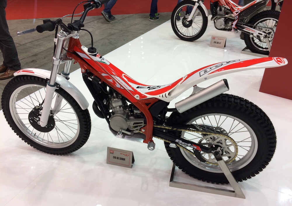 BETA: l’azienda italiana, presente con uno stand molto importante, ha naturalmente dedicato molto spazio alla sua completissima gamma Trial con particolare attenzione alle versioni mini elettriche, che oramai sono a tutti gli effetti considerate il viatico per iniziare i bambini alle moto. Ecco quindi che si aggiunge la versione 20xl, che promette prestazioni pari ad un 80cc endotermico. Già note le versioni della EVO MY2017 in livrea rosso-bianca con cilindrate da 80 a 300cc, e decisamente interessante la versione 300 SS 2t, caratterizzata da un motore ammorbidito per far fronte ai clienti che gradiscono un mezzo corposo ma docile, sicuramente una buona idea. Da segnalare inoltre la versione EVO 250, con sovrastrutture, porta targa ed impianto luci omologato, proposta evidentemente destinata a quella clientela che, oltre alla specificità d’utilizzo, desidera un po' di confort derivante da sella e serbatoio integrati; utile, seppur non particolarmente gradevole esteticamente, il port targa agganciato al forcellone, soluzione che offre, secondo i tecnici Beta, una garanzia contro le facili rotture di un aggancio tradizionale. In ambito piloti, sono confermati Casales, Gubian ed anche il nostro Filippo Locca, che sale nel Factory Team.