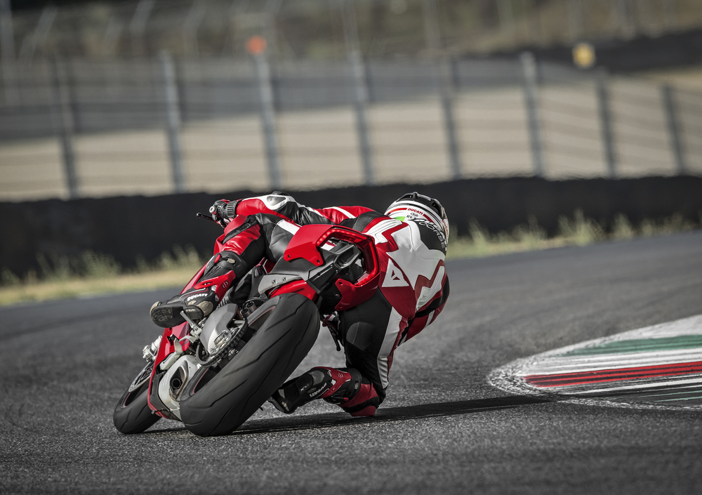 Differenze anche in materia di cerchi, con la Panigale V4 che si accontenta di cerchi fusi in alluminio mentre le due versioni più pregiate contano su unità forgiati. Novità assoluta per gli pneumatici Pirelli Diablo Supercorsa SP, con l’anteriore nella misura tradizionale 120/70 ZR 17 e l’inedita posteriore 200/60 ZR 17, che riproduce il profilo della slick impiegata nel Mondiale Superbike, con una fascia sulla spalla in mescola SC2 slick.