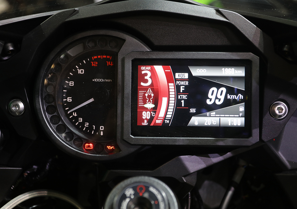 Nessun altro cambiamento per tutto il resto dell'equipaggiamento e della dotazione rispetto alla ZX-10R che conosciamo, già al top con 200 cv a 13.000 giri (dieci in più con RAM AIR in pressione) e le pinze anteriori Brembo M50 ma il sistema KECS importa un aggravio di peso nell'ordine di 2 kg che raggiunge così il valore di 208 kg a secco.
