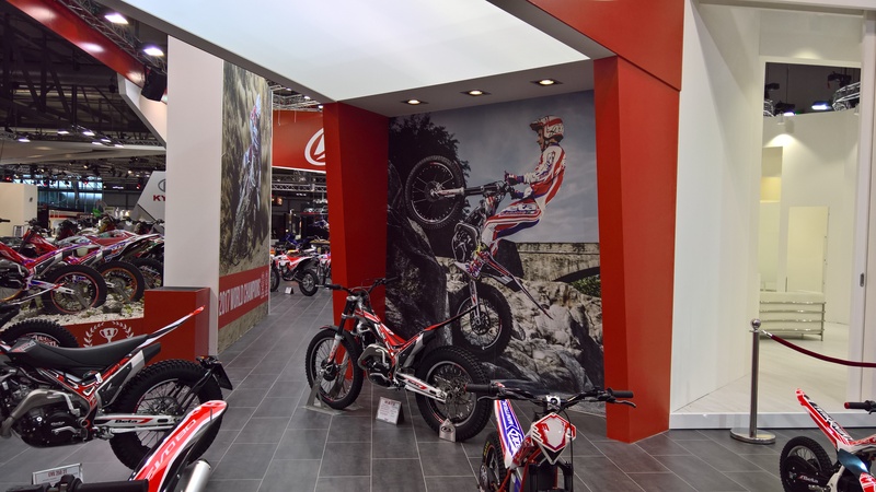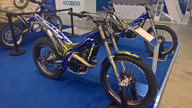 L’azienda italiana presente anche quest’anno con uno stand molto importante, seppur sempre più orientata al mondo dell’enduro, ha dedicato parecchio spazio alla sua gamma Trial che come sempre spazia dalle mini elettriche, proposte nelle tre misure da 16/20/20XL pollici, fino alle versioni big bore 300 EVO già tutte in vendita presso la rete dei concessionari del marchio fiorentino. Nessuna variazione rilevante sulla gamma MY 2018, che ottimizza i suoi modelli con la consueta nuova versione estetica, e per l’occasione rispolvera il telaio lasciato al suo naturale color alluminio e sovrastrutture a fondo nero con fregi bianco rossi. In ambito piloti sono confermati il francese Loris Gubian e anche il nostro Filippo Locca, che però abbandona l’attività internazionale per dedicarsi al meglio al torneo Nazionale, mentre sembra tornare nel Factory Team l’inglese James Dabill.