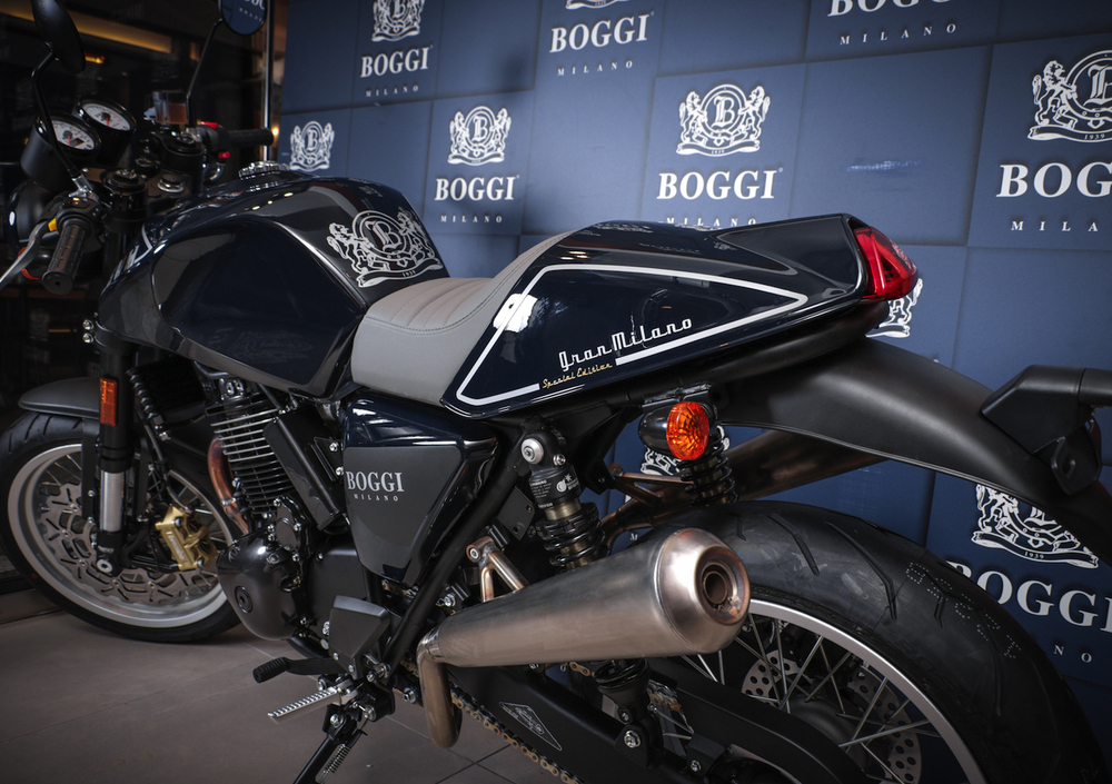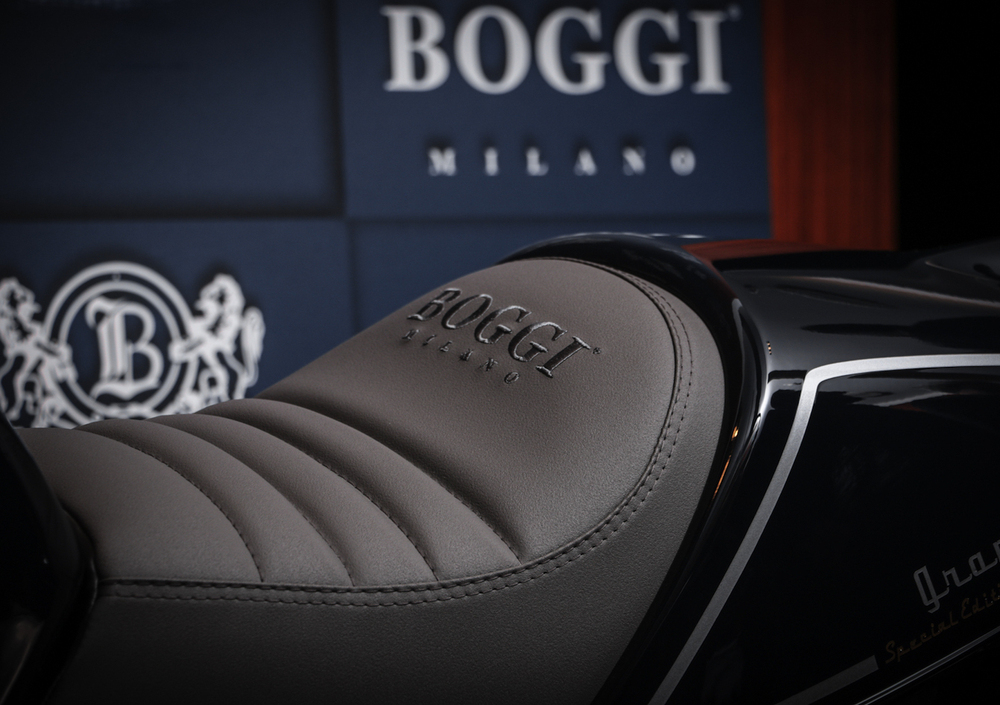 SWM e Boggi Milano insieme per una e SWM “Special Edition” della Gran Milano, l’elegante naked dallo stile retrò che in questa versione acquista ancora più carisma ed eleganza, a partire dalla cromia in blu Boggi, cui si aggiungono dettagli di stile e carattere, come le personalizzazioni grigie per il ricamo sulla sella, lo stemma Boggi in evidenza sul serbatoio, l’originale faro posteriore triangolare e il doppio sellino di serie, per l’uso monoposto in chiave più sportiva o biposto in versione comfort.