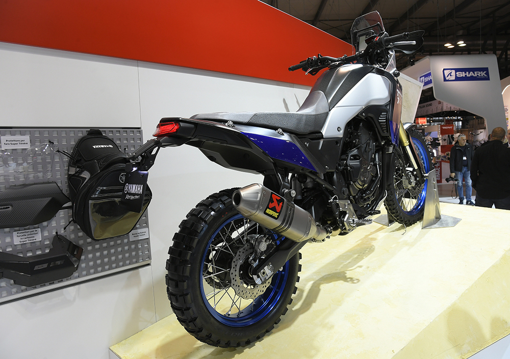 Come avevate potuto notare lo scorso anno, la T7 montava un motore bicilindrico parallelo. Ebbene sì, la Yamaha Ténéré 700 World Raid è spinta dal prospulsore crossplane da 689 cc utilizzato sulla apprezzatissima MT-07. Quindi promette tanta coppia fin dai bassi regimi ed un’erogazione brillante. Inoltre, per rafforzare il look e migliorare sound e prestazioni, il prototipo adotta anche uno scarico dedicato Akrapovič in stile rally.
