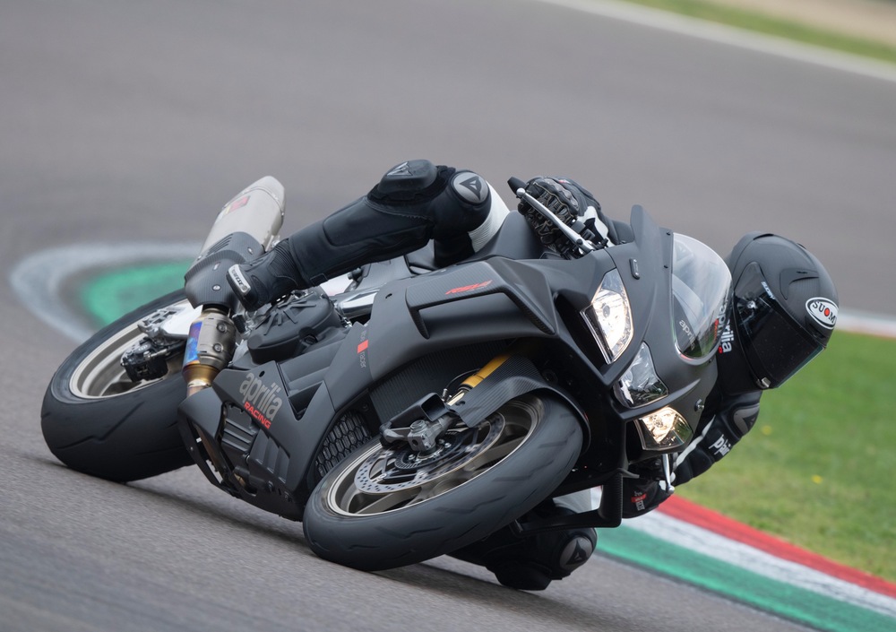 L'evoluzione (con l'alesaggio portato a 81mm rispetto ai 78 del modello 1000, con corsa invariata a 52,3mm) spinge il quadricilindrico a V Aprilia ad erogare 217cv a 13.200 giri, con una coppia che cresce del 10% e oltre su tutto l'arco d'erogazione, per un valore massimo che raggiunge i 122Nm a 11.000 giri. Di serie lo scarico Akrapovic in titanio omologato.