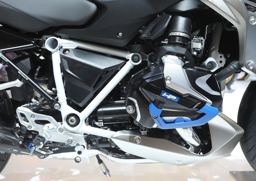 Come il nuovo R 1250 GS, anche la versione R monta il nuovo boxer ShiftCam, con tecnologia di fasatura variabile delle valvole di scarico e di aspirazione. Prima di tutto cresce la cilindrata: da 1.170 cc a 1.254 cc. Aumentano anche la potenza e la coppia: 136 CV a 7.750 giri/min e 143 Nm a 6.250 giri/min (sul vecchio motore erano 125 CV a 7.750 giri/min e 125 Nm a 6.500 giri/min).