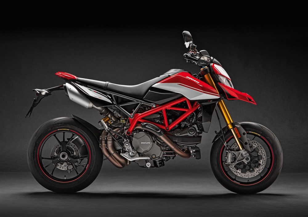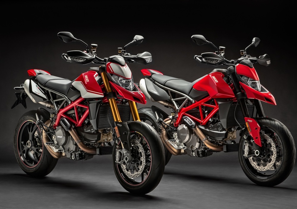 Il comparto sospensioni vede l'aggiornamento della forcella con una nuova unità Marzocchi con foderi e steli in alluminio da 45 mm completamente regolabile, con escursione ruota di 170 mm. Al posteriore troviamo invece un monoammortizzatore Sachs regolabile con escursione ruota di 150 mm. L’Hypermotard 950 SP monta invece una forcella Öhlins da 48 mm di diametro completamente regolabile, con escursione ruota di 185 mm e un ammortizzatore Öhlins completamente regolabile, con escursione ruota di 175 mm.