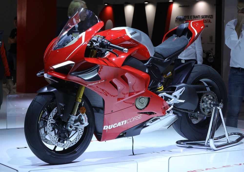 Tutta nuova nel motore, che riprende naturalmente le basi gettate con il Desmosedici Stradale in versione da 1.100cc (qui analizzato dal nostro Massimo Clarke) ma con una ciclistica ancora più leggera e specialistica, e soprattutto il debutto del pacchetto aerodinamico composto da plexiglass alto, cupolino e carenature laterali protettive per migliorare la penetrazione aerodinamica, estrattori d’aria per raffreddare il motore e appendici aerodinamiche in fibra di carbonio derivate da quelle utilizzate sulla Desmosedici GP16.