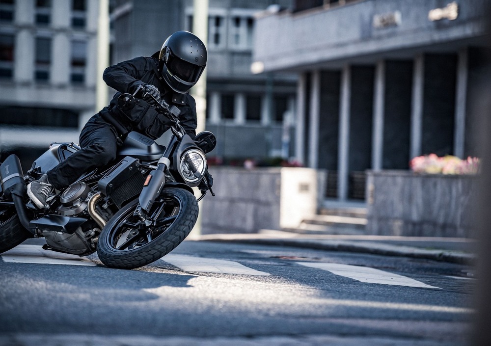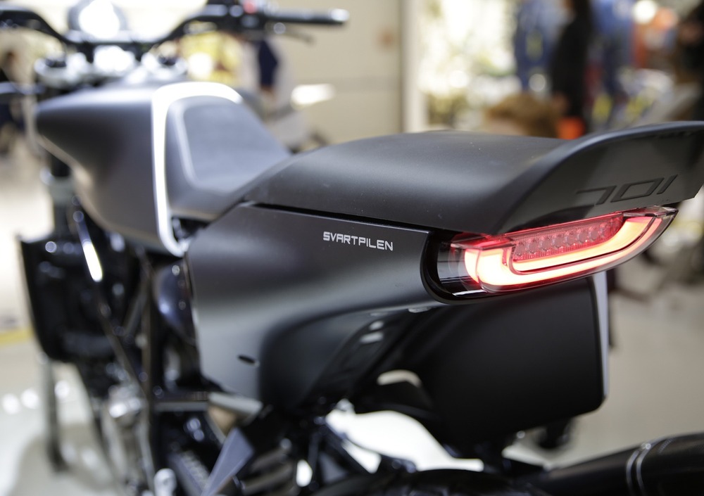 Come ci si poteva aspettare la versione definitiva della Svartpilen 701 ha il design del concept: linee futuristiche, dettagli da flat track e colorazione nero opaco. Risaltano le sospensioni WP (forcella da 43 mm con regolazioni rapide) e il faro rotondo frontale, condiviso con la sorella Vitpilen 701. A differenza della sorella con i semimanubri, sulla Svartpilen 701 la posizione di guida è più dritta e ci sono le tabelle porta numero come prolungamento del codino.