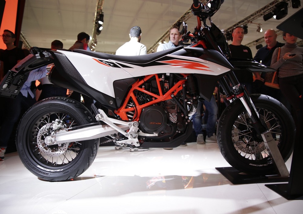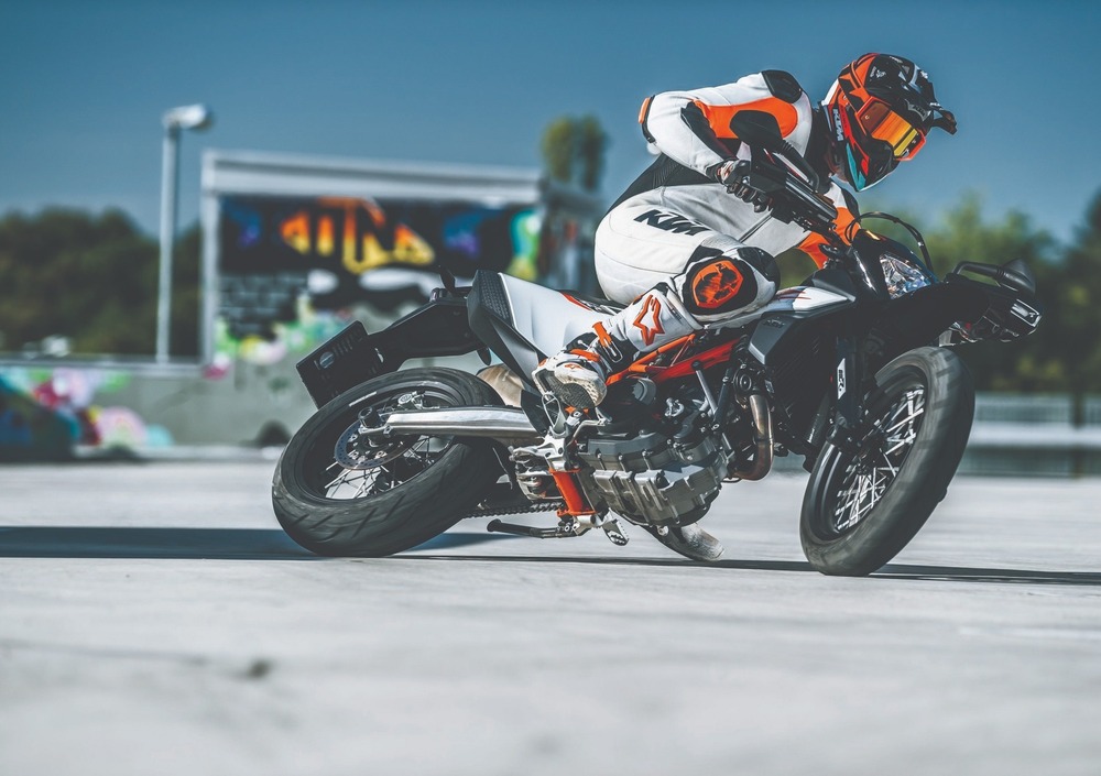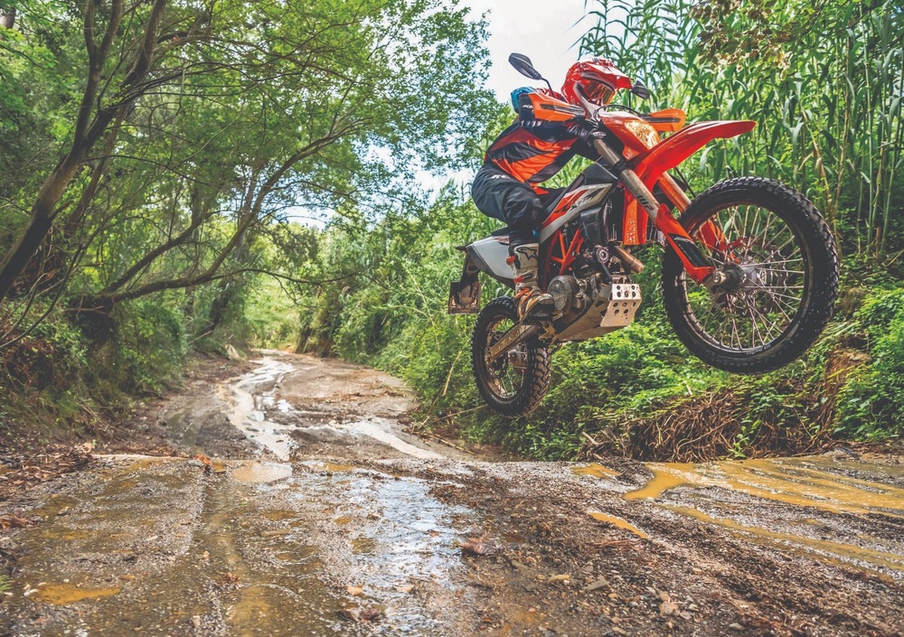 Dove i due modelli si allontanano è naturalmente nella dimensione dei cerchi, con la versione enduro dotata della tradizionale accoppiata 21-18” con pneumatici Mitas E07, mentre la motard SMC si affida a due unità da 17”. Il comparto sospensioni della Enduro conta su una forcella WP XPLOR completamente regolabile con idraulica separata sui due steli. Stessa tecnologia per il monoammortizzatore, che lavora con un forcellone in alluminio in fusione monopezzo attraverso leveraggi progressivi. Sulla Motard, invece, troviamo una forcella WP APEX con steli da 48mm, sempre con funzione idraulica separata fra i due steli, mentre al posteriore troviamo un monoammortizzatore, sempre WP APEX, completamente regolabile.