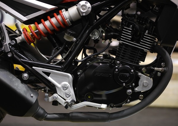 La Rock 125 è caratterizzata dai cerchi a raggi da 17 pollici, sia all’anteriore che al posteriore, da una forcella a steli rovesciati da 37 mm e dal monoammortizzatore posteriore laterale a vista. Il motore è un monocilindrico 4T, monoalbero da 124 cc e 11 cv a 9.500 giri.